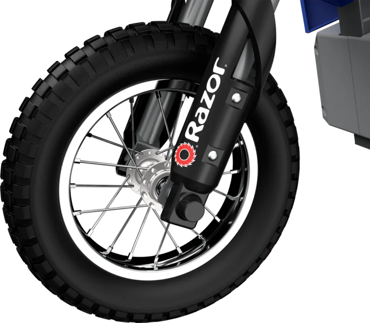 12” spoked wheels with pneumatic tires handle all types of terrain and provide maximum support and performance to ride the trails with ease.